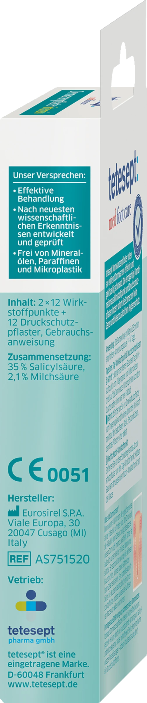tetesept Dornwarzenpflaster intensiv entfernt Dornwarzen effektiv und gleichzeitig schonend. Die einzigartige Kombination aus Wirkstoffpunkt und Druckschutzpflaster lindert sofort die Schmerzen beim Gehen und bietet zusätzlichen Hygieneschutz.