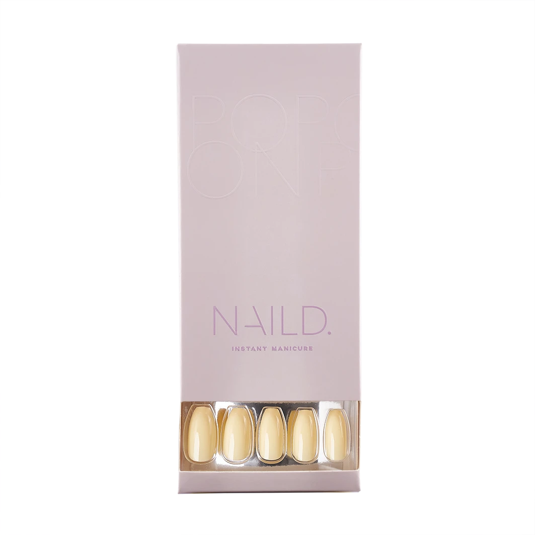 NAILD© revolutioniert das Maniküre-Programm: Mit Nagelkleber, Feile, Rosenholzstab und 24 innovativen Pop-on Nails (je 12 Größen pro Hand) enthält das Set alles, was Sie für ein perfektes Nagel-Design in drei Schritten benötigen – die perfekte Alternative zum Studio! Die einzigartig Kunstnägel Peach Lemonade coffin überzeugen mit einer sanften pastellgelben Transparenz und einem langen schmalen, eckigen Design in kräftigen lilabraun, einer an den natürlichen Nagel angepassten Statik und einem bis zu 14 Tage langen Halt! Neben der supereinfachen Anwendung sind die Tools beim Einhalten der Pflegehinweise auch superschonend zum Naturnagel, lassen sich schnell wieder entfernen und können bis zu viermal wiederverwendet werden.