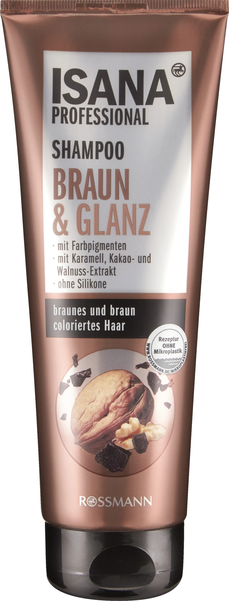 ISANA Professional Shampoo Braun & Glanz wurde speziell für Bedürfnisse von naturbraunem und braun coloriertem Haar entwickelt. Das Shampoo mit den wertvollen Inhaltsstoffen wie Karamell, Kakao- und Walnussextrakten sowie Vitamin E und Panthenol pflegt und schützt das Haar. Mit speziellen Farbpigmenten – für gesund glänzendes und geschmeidiges Haar bis in die Spitzen. Ohne Silikone. Hautverträglichkeit: dermatologisch bestätigt. Diese Rezeptur ist zu 100% ohne Mikroplastik.