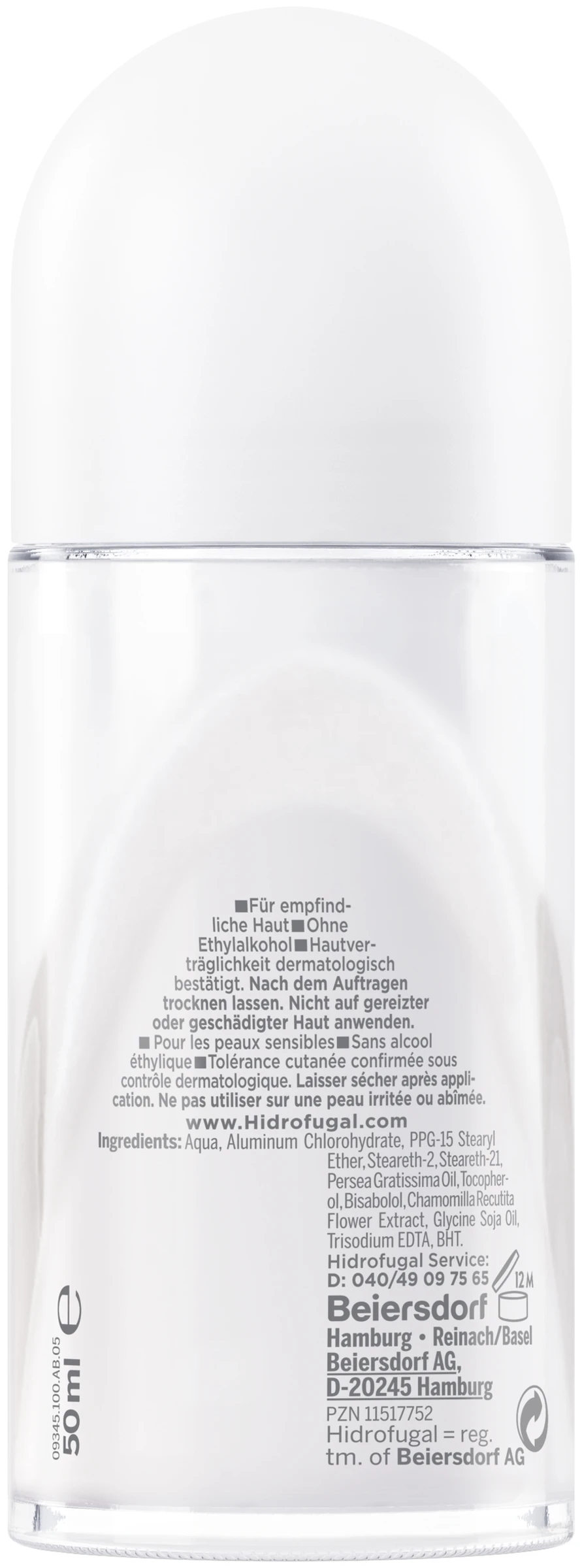 Aqua, Aluminum Chlorohydrate, PPG-15 Stearyl Ether, Steareth-2, Steareth-21, Persea Gratissima Oil, Tocopherol, Bisabolol, Chamomilla Recutita Flower Extract, Glycine Soja Oil, Trisodium EDTA, BHT